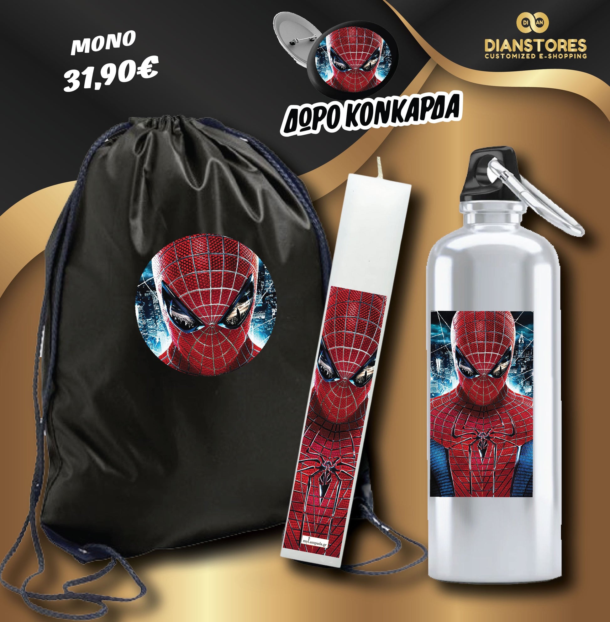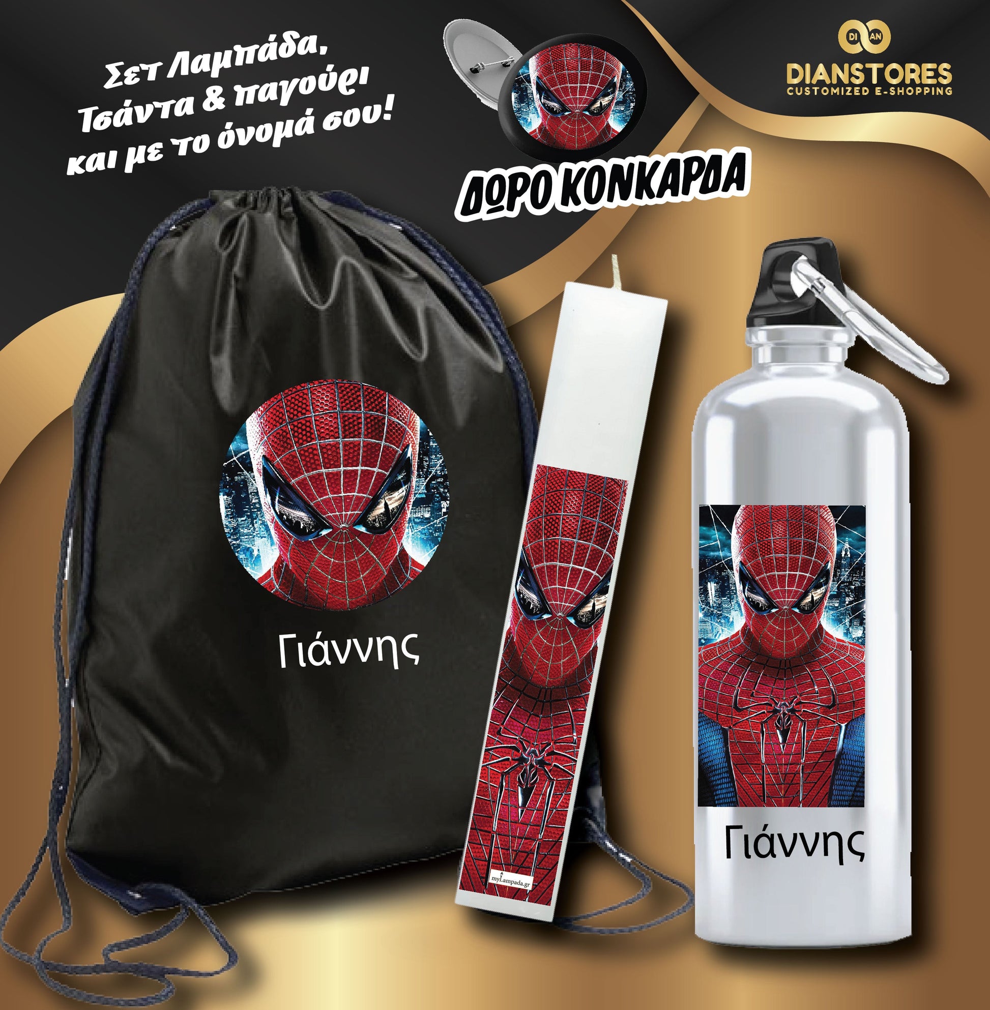 Σετ Λαμπάδα , Παγούρι & Τσάντα σακίδιο πλάτης γυμναστικής με εκτύπωση Spiderman
